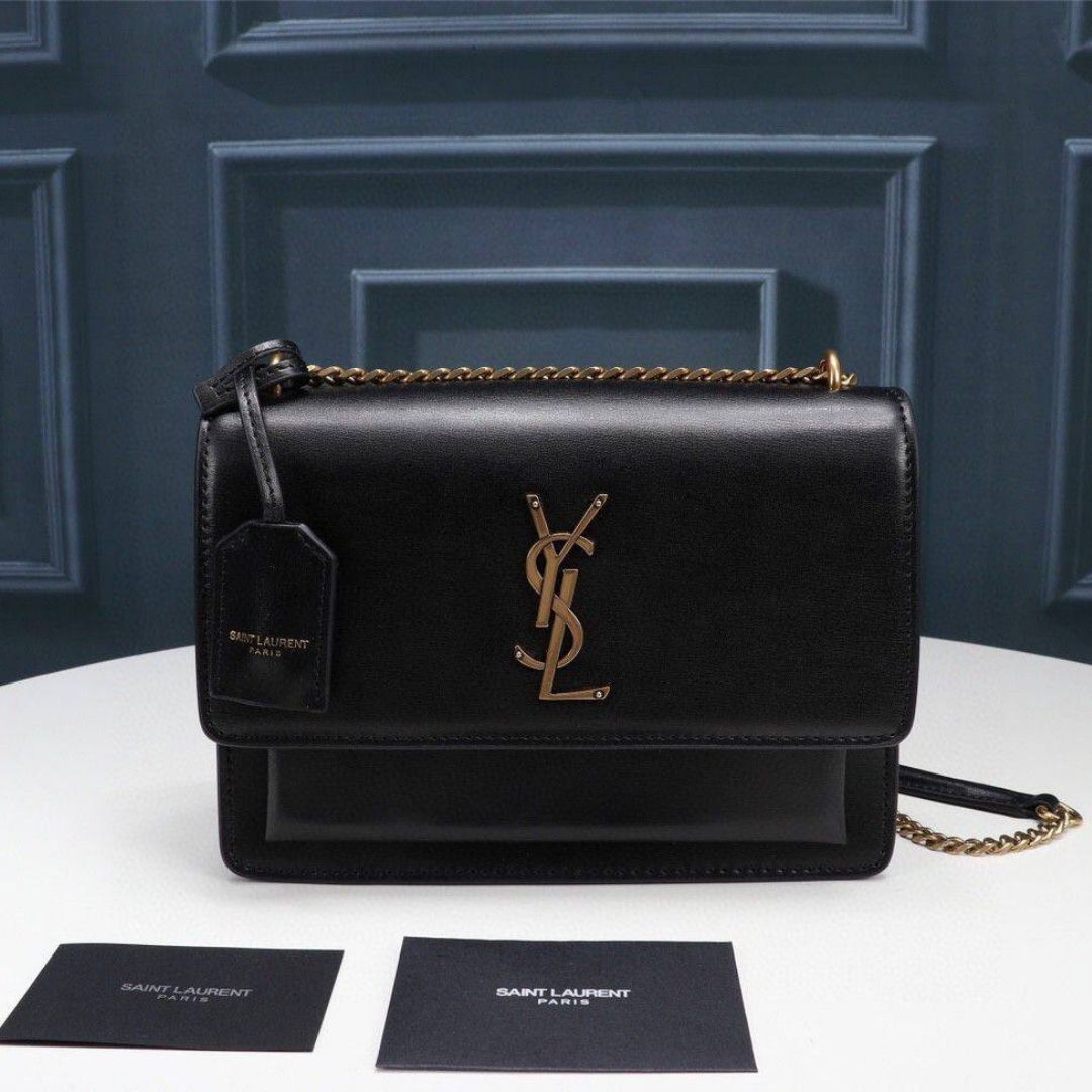 Borsa Saint Laurent Sunset Medium in pelle nera 22 cm