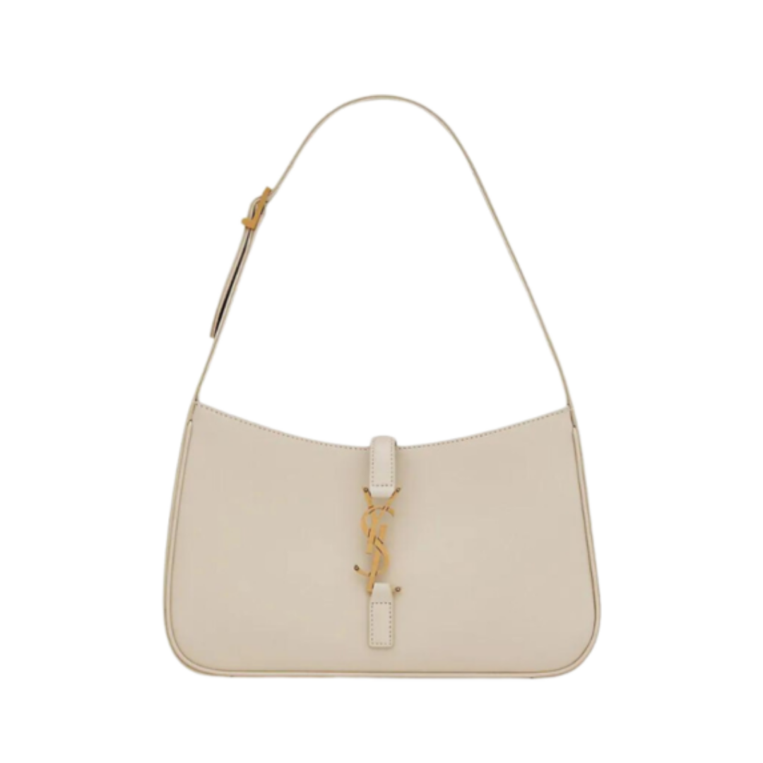 Borsa Saint Laurent Le 5 À 7 Hobo in pelle liscia avorio 23 cm