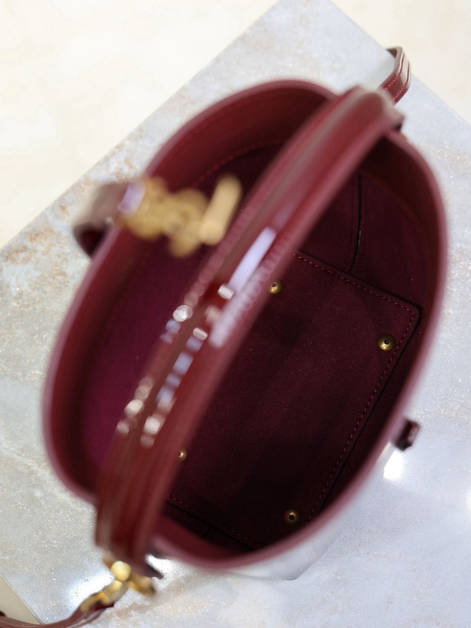 Dimensioni:● Larghezza: 15 cm● Altezza: 13 cm● Profondità: 6 cm Dettagli:● Materiale: pelle di vitello verniciata● Colore: bordeaux lucido● Chiusura: