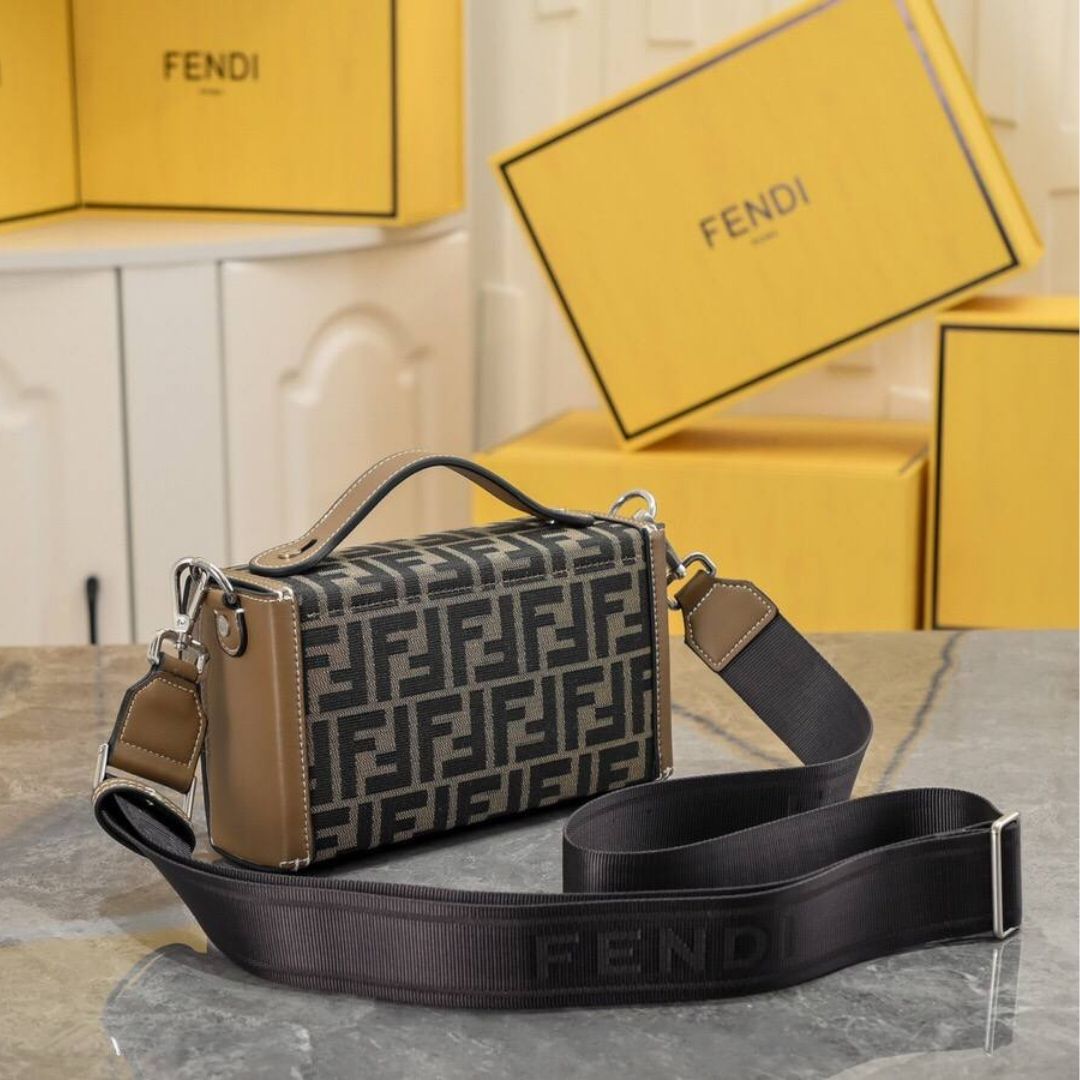 ● Materiale: Tessuto FF jacquard e pelle