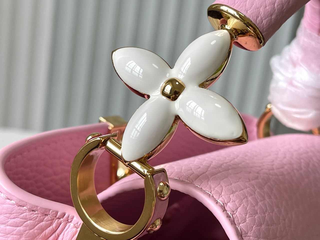 ● Logo: LV oversize frontale in metallo dorato smaltato tono su tono