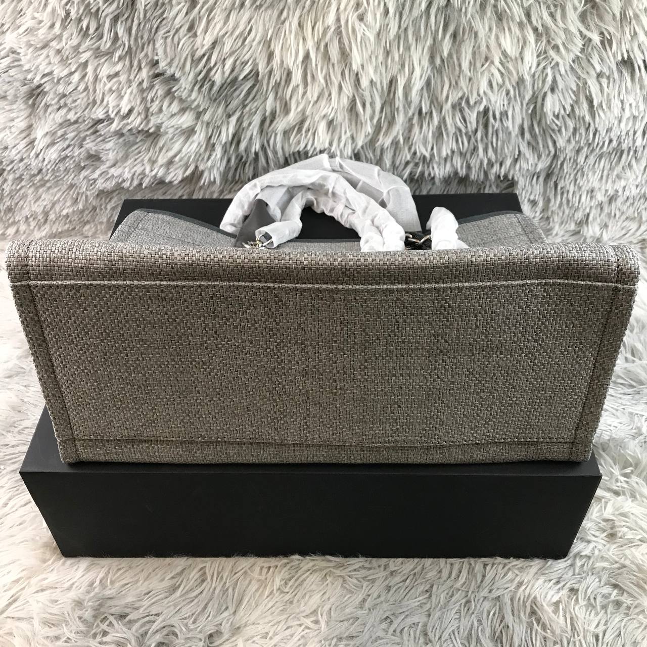 ● Materiale: Tela intrecciata con texture naturale e finiture in pelle