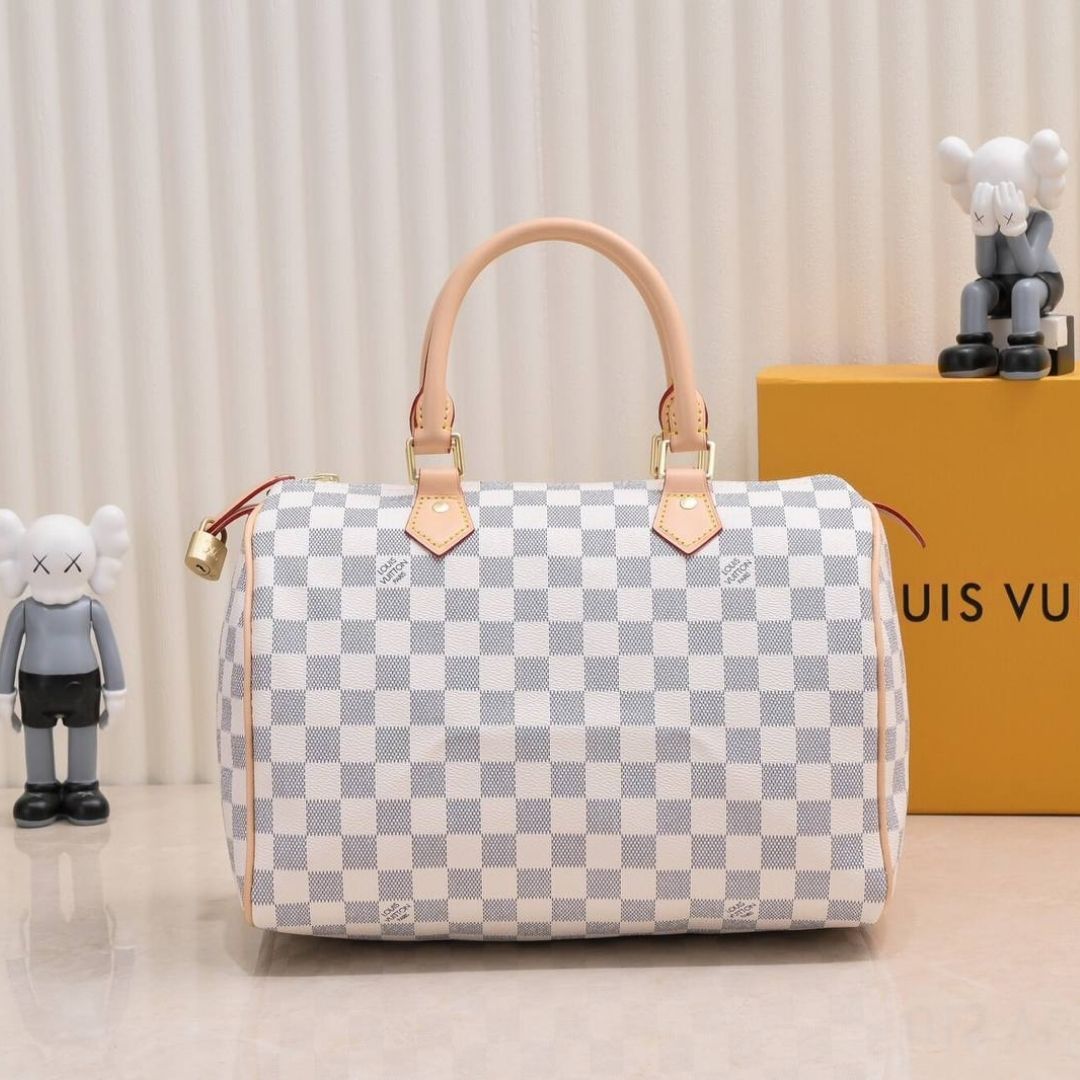 ● Materiale: Tela Damier Azur con finiture in pelle naturale