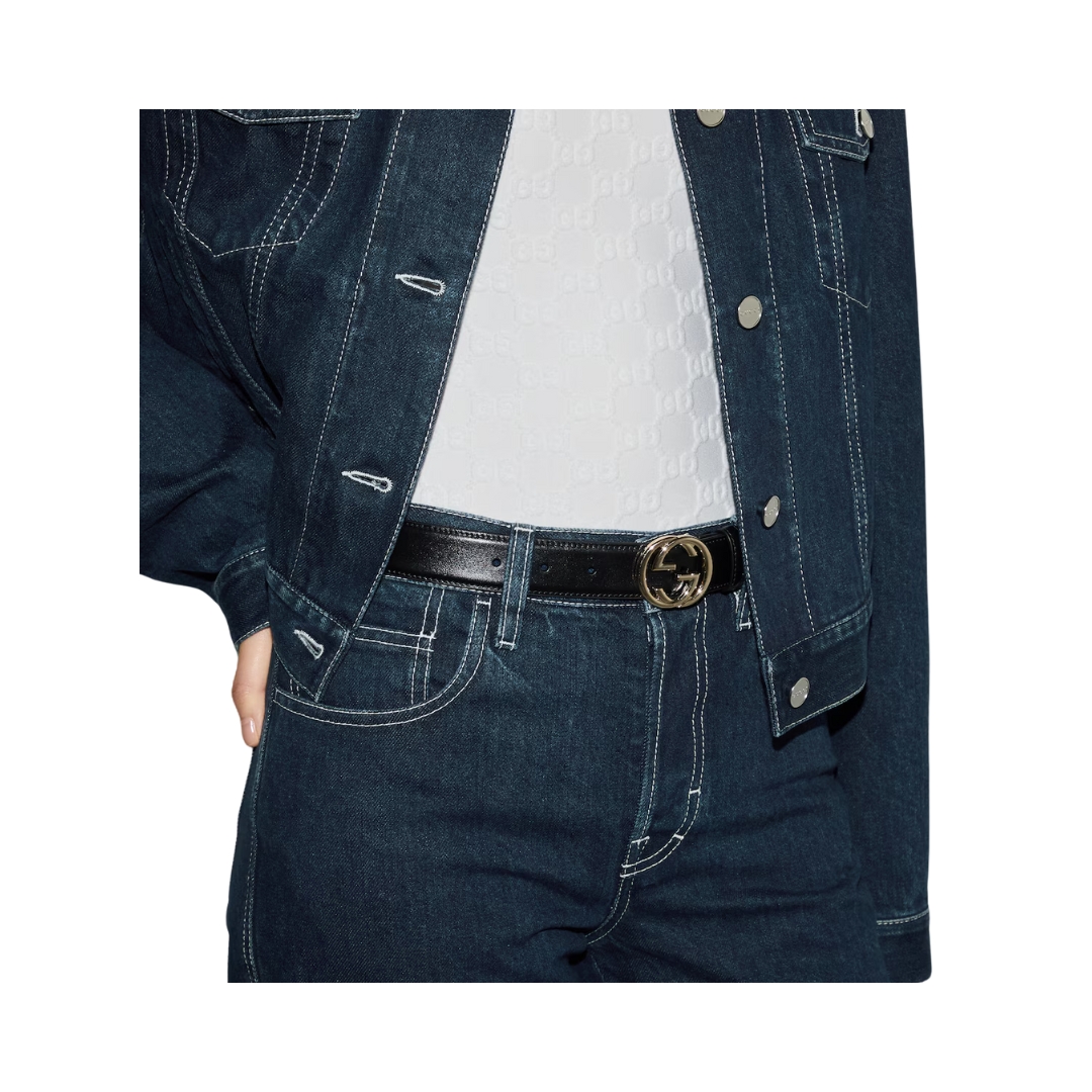 Cintura Gucci in pelle nera con fibbia GG 3 cm