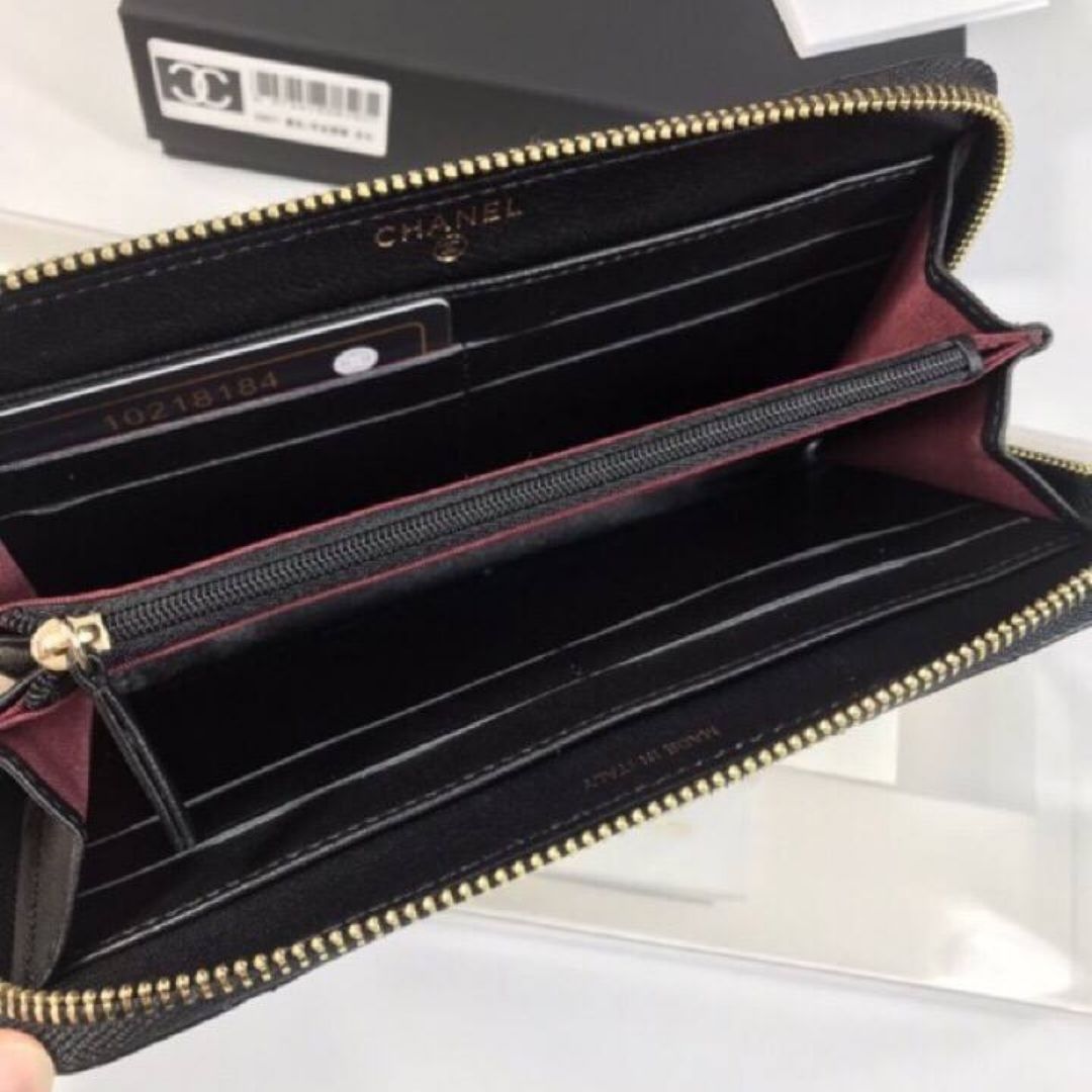 ● Interno: Slot per carte, zip interna, tasche per banconote