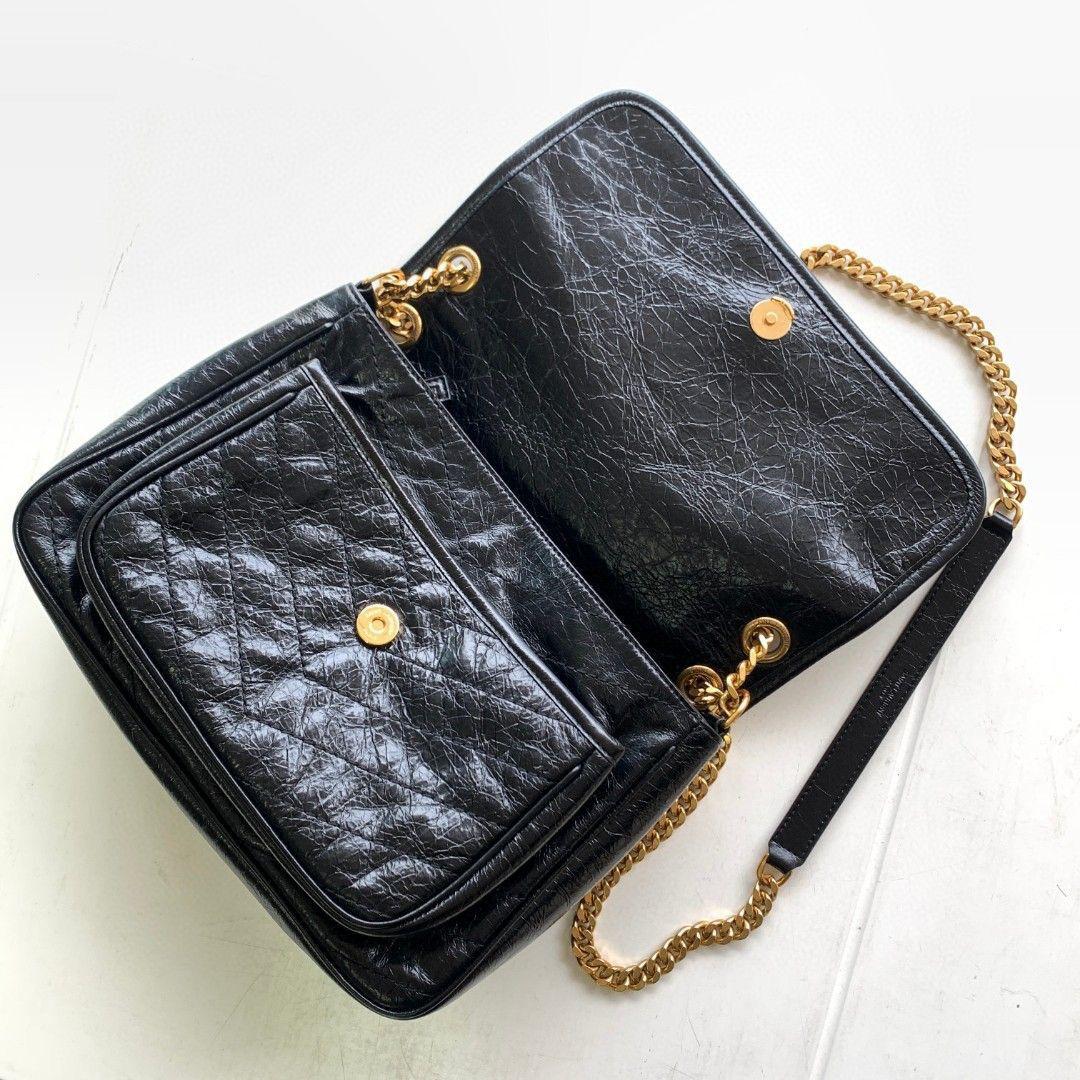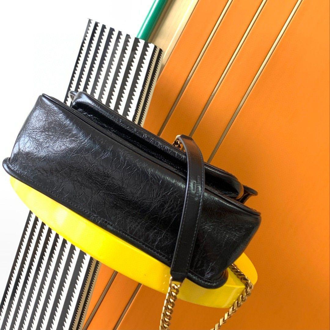 ● Tracolla: Catena scorrevole in metallo nero con inserto in pelle (portabile crossbody o a spalla)