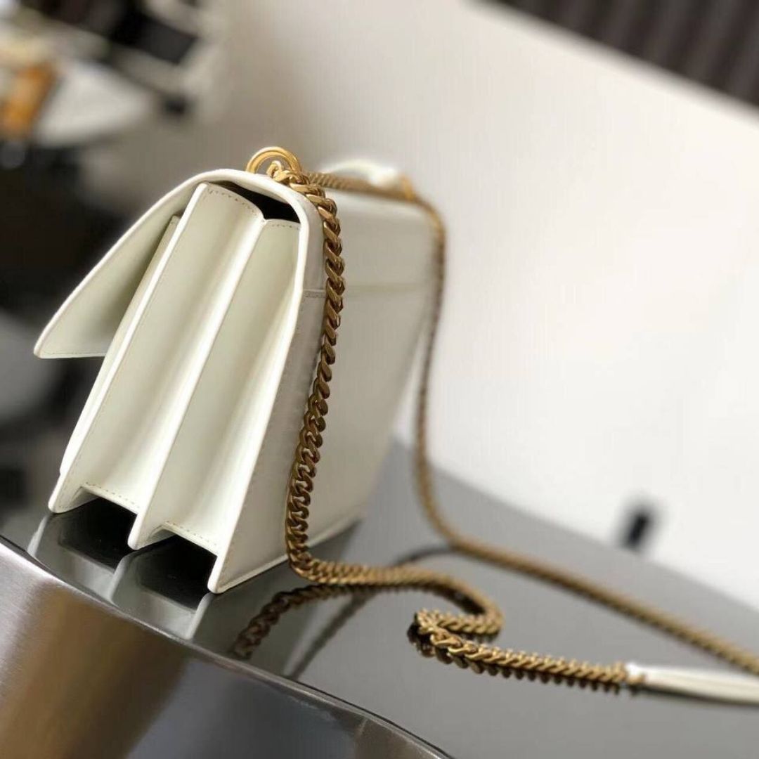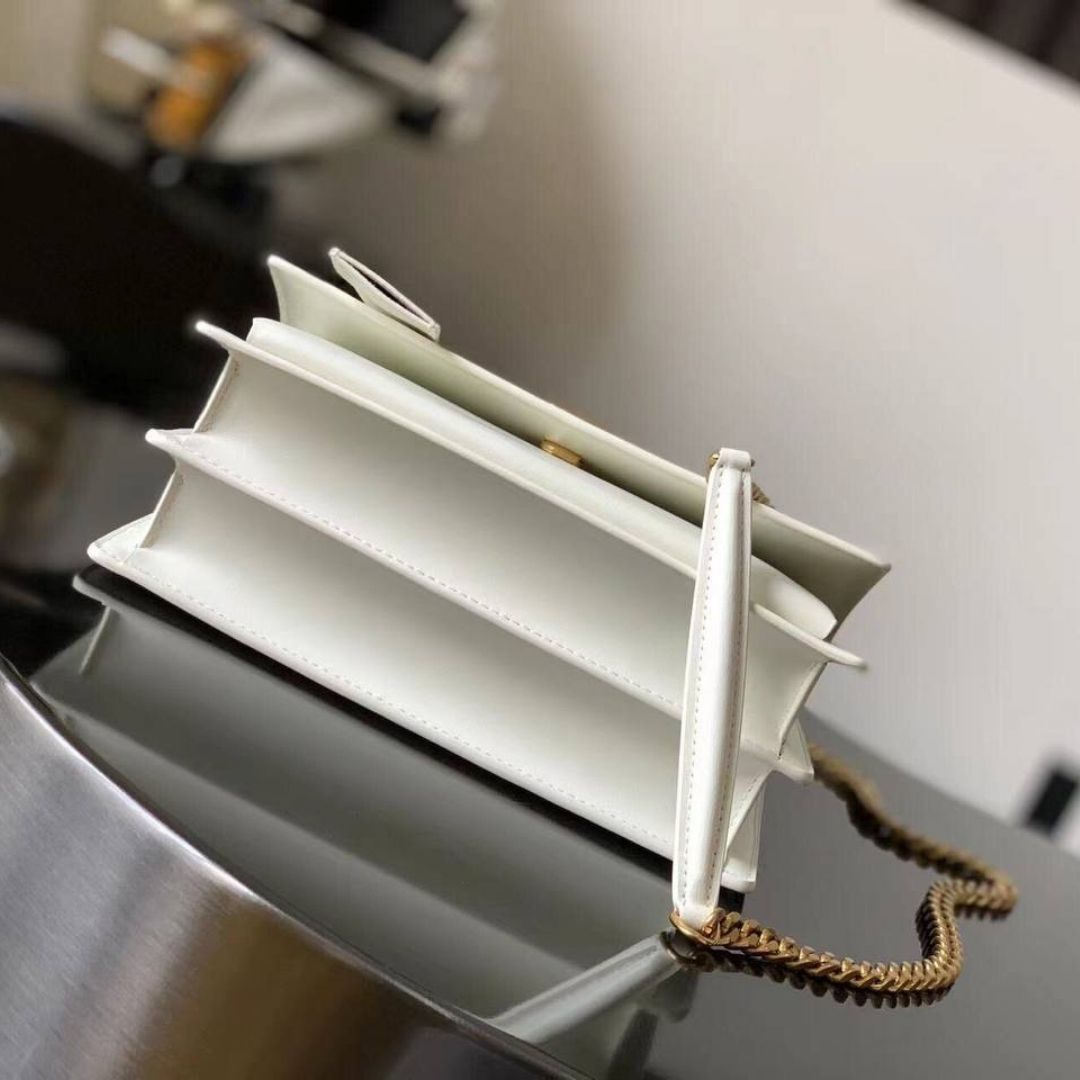 ● Tracolla: Catena a scorrimento con inserto in pelle (portabile a spalla o crossbody) + Tag pendente/Mini portacarte Saint Laurent removibile