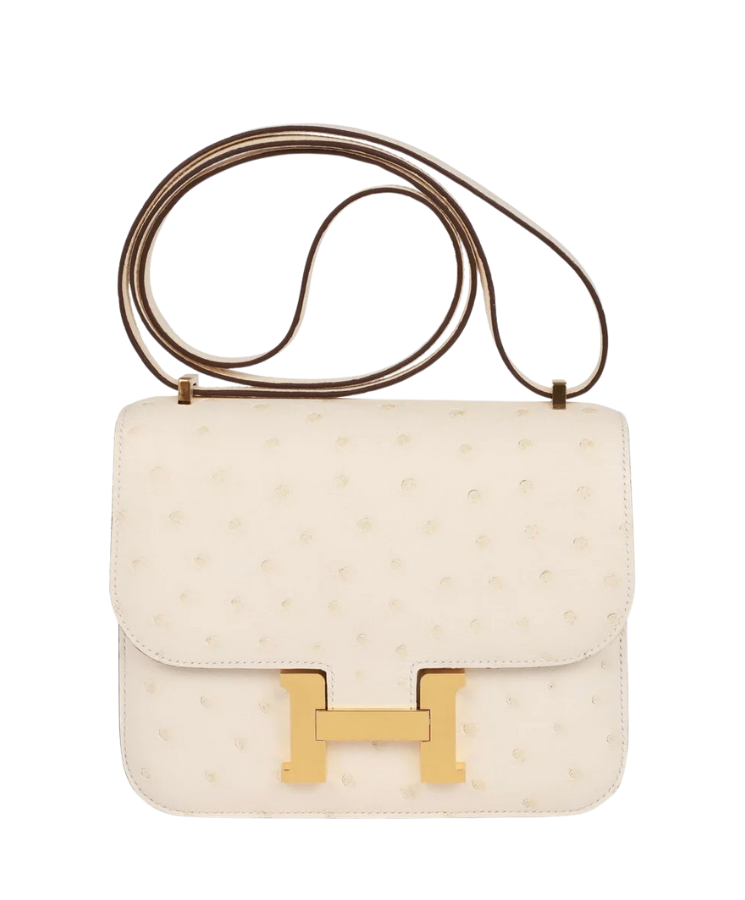 Borsa Hermès Constance 19 in pelle di struzzo crema con hardware oro