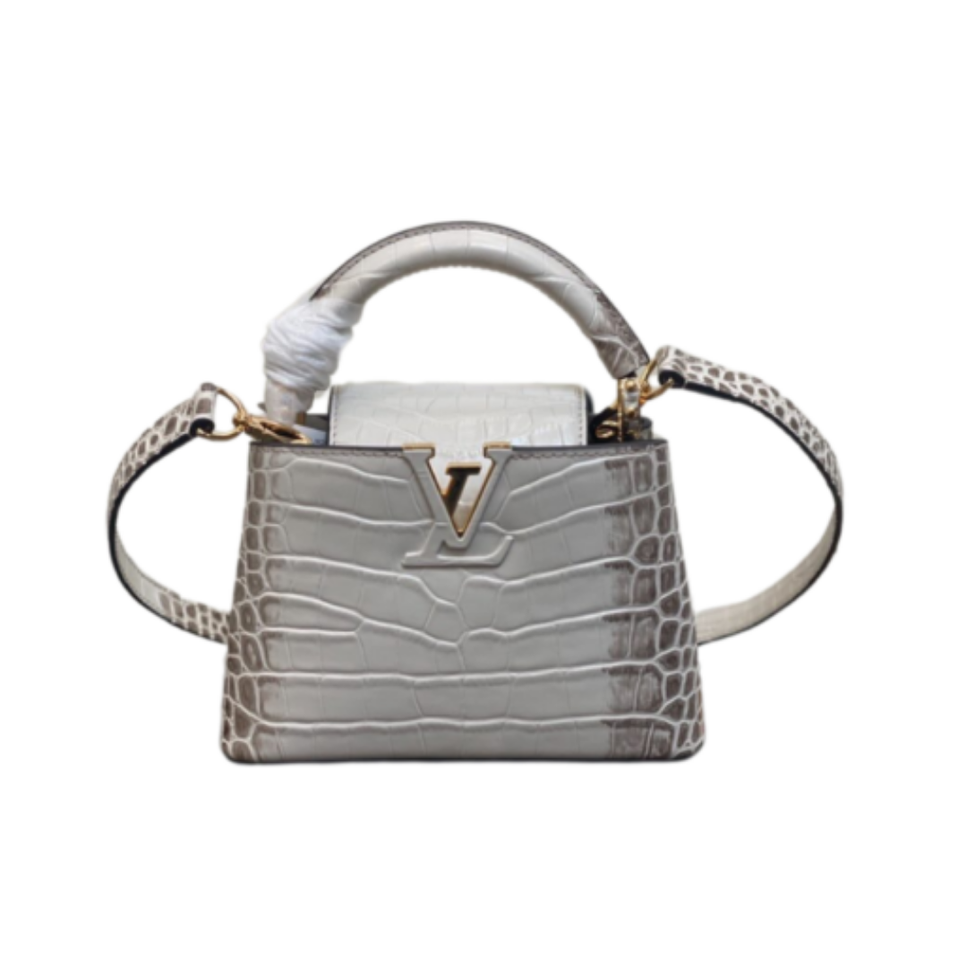 Borsa Louis Vuitton Capucines BB in pelle taurillon grigia con manico marrone 21 cm