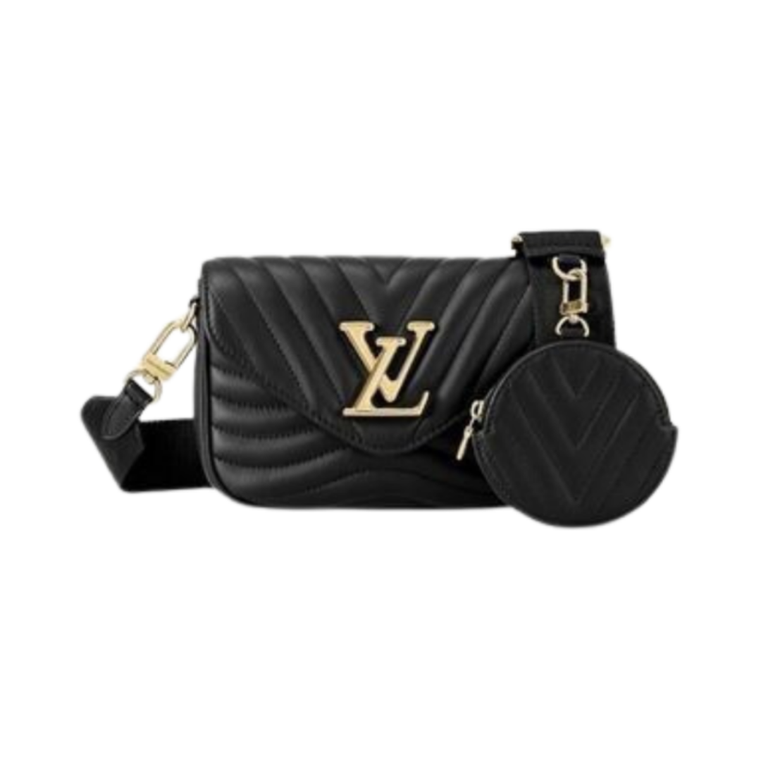 Borsa Louis Vuitton New Wave Multi Pochette in pelle trapuntata nera 19 cm