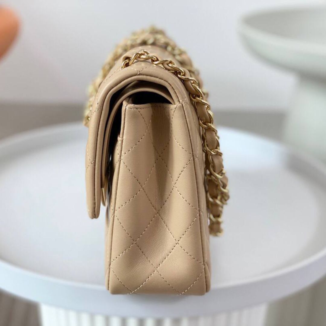 Borsa Chanel 11.12 Double Flap beige clair media 25,5 cm