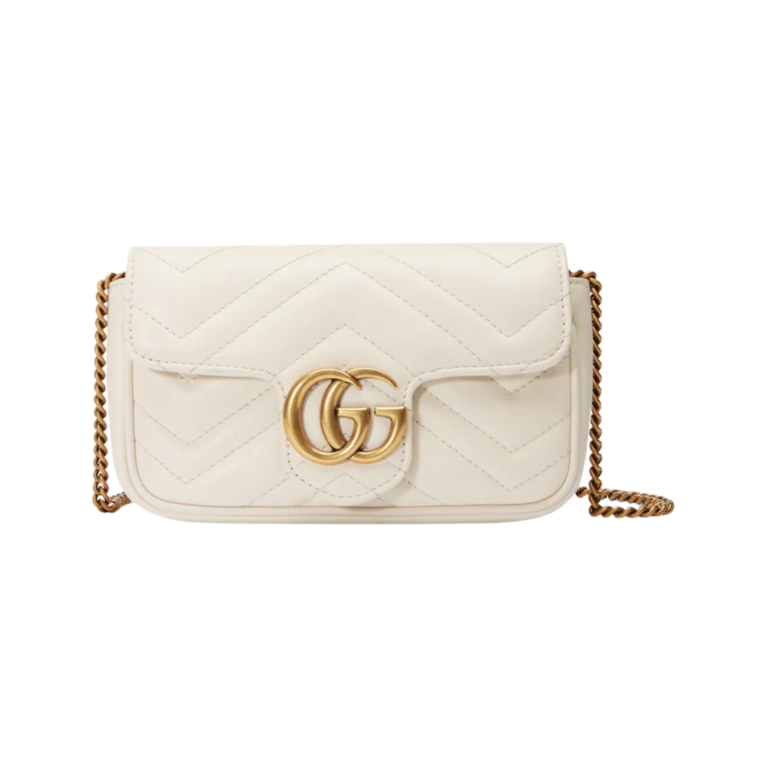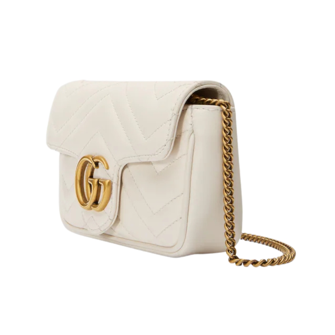 Borsa Gucci GG Marmont Super Mini in pelle bianca 16.5 cm