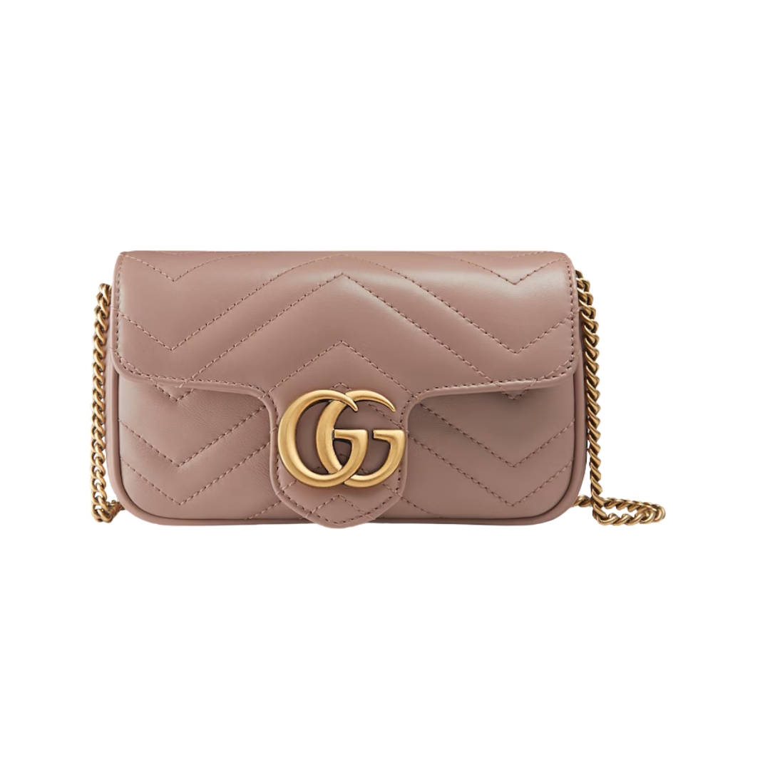 Borsa Gucci GG Marmont Super Mini in pelle rosa polvere 16.5 cm