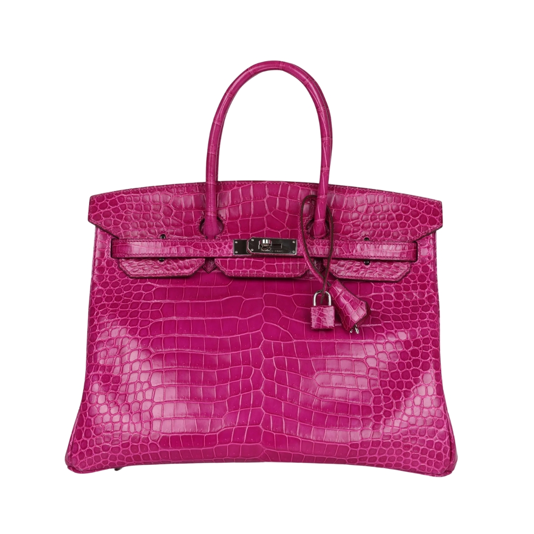 Borsa Hermès Birkin 35 in coccodrillo lucido Porosus Rose Sheherazade