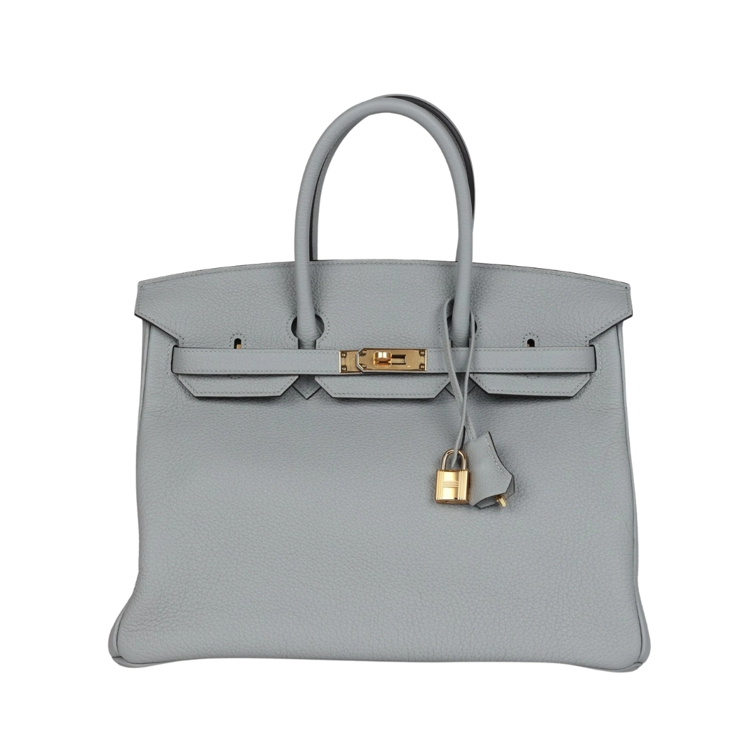 Borsa Hermès Birkin 35 in pelle Togo Bleu Glacier con finiture dorate