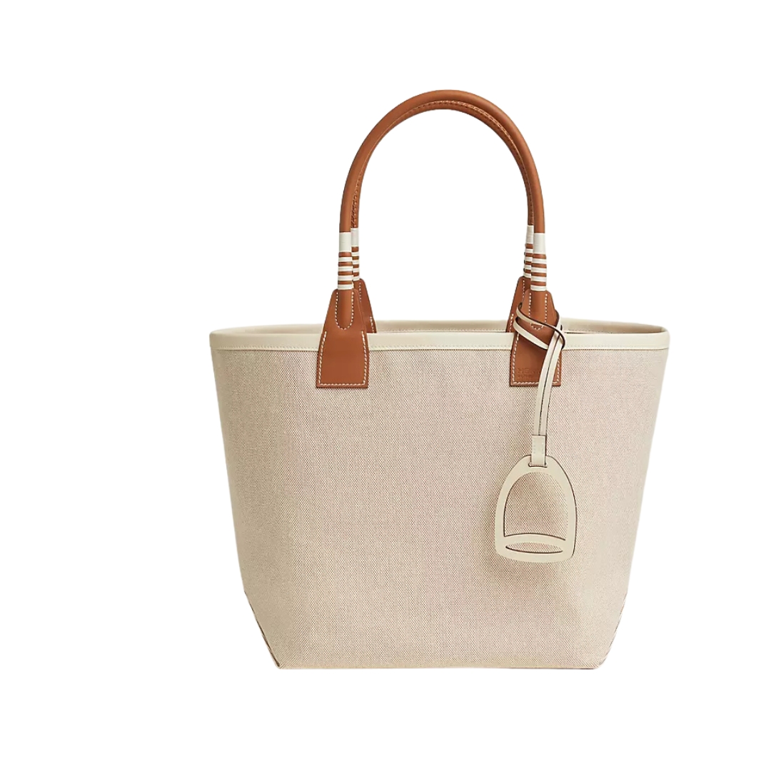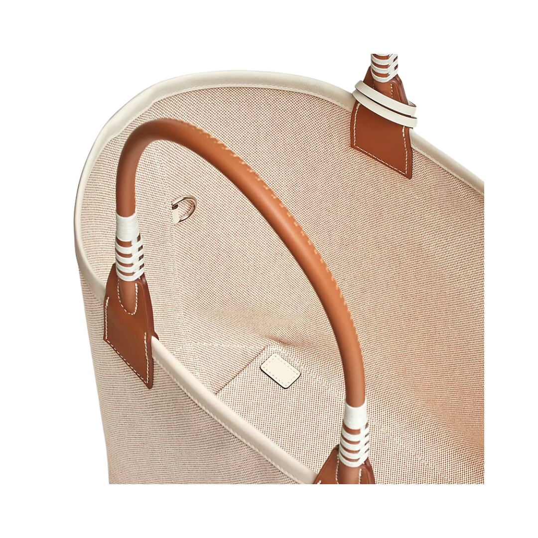 Dimensioni:● Larghezza: 28 cm● Altezza: 25 cm● Profondità: 13 cm Dettagli:● Materiale: Tela con manici in pelle● Colore: Beige con