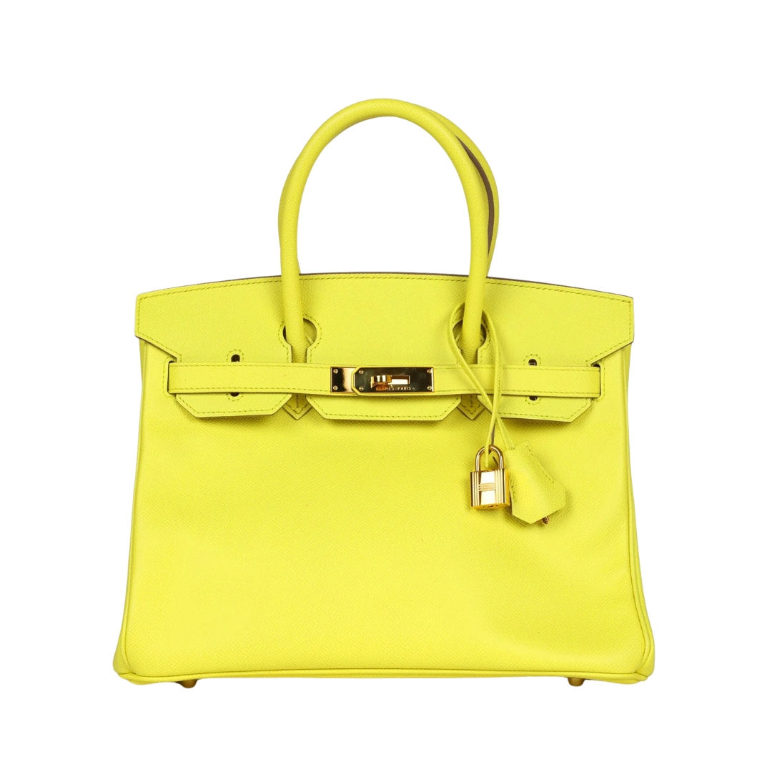 Borsa Hermès Birkin 30 in pelle Epsom color Limette con hardware dorato