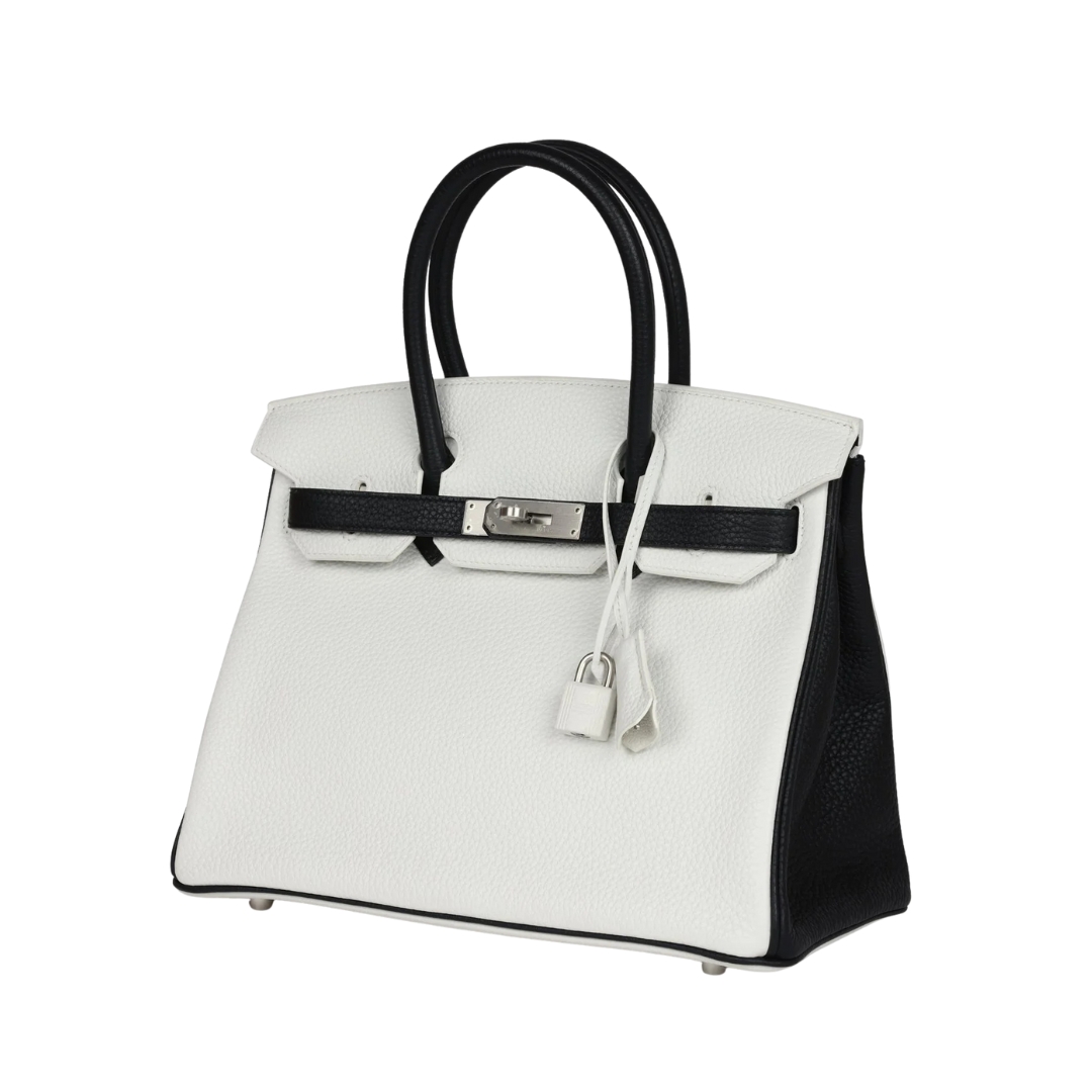 Borsa Hermès Birkin 30 in pelle Clémence bianca e nera