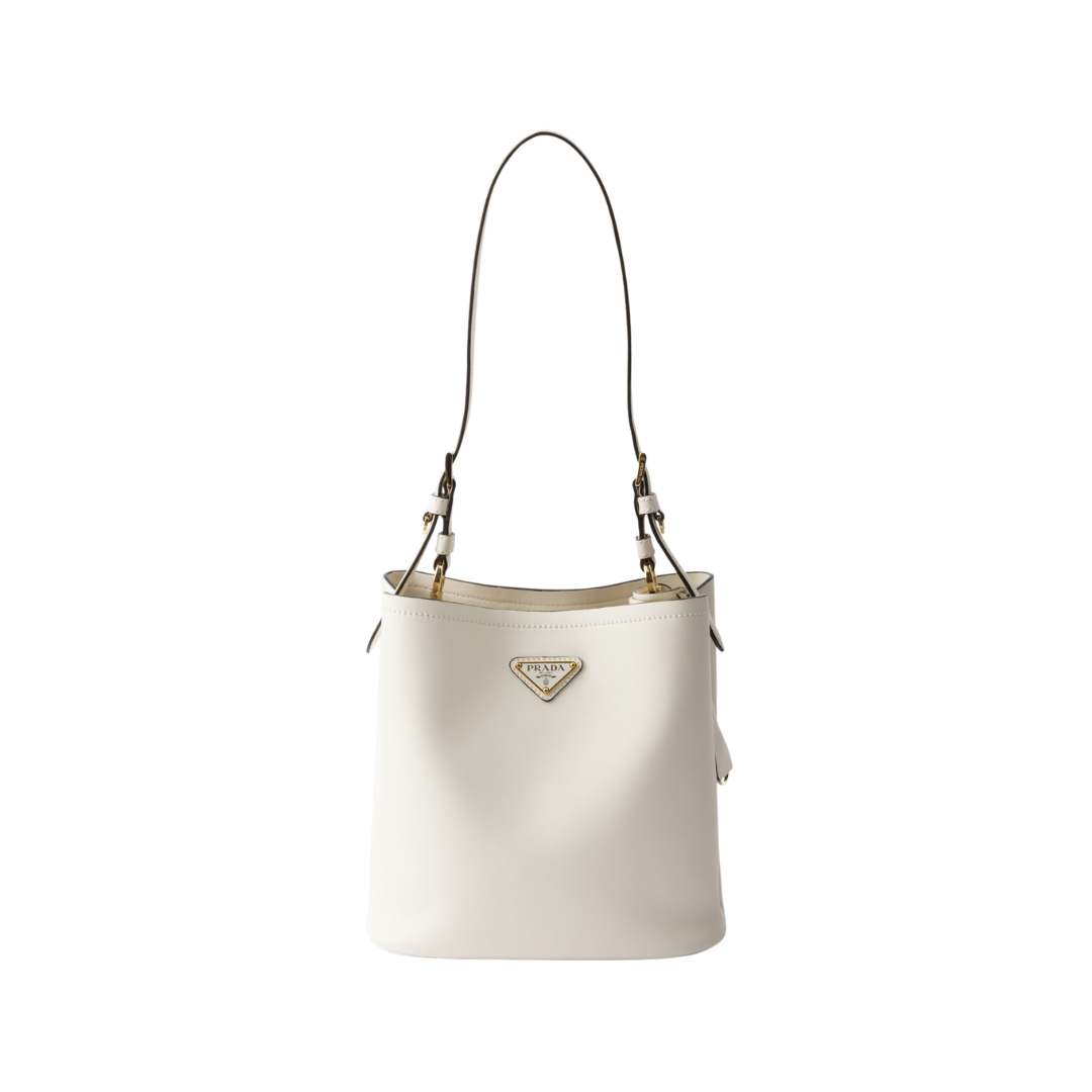 Borsa Prada Moon in pelle spazzolata bianca 22 cm