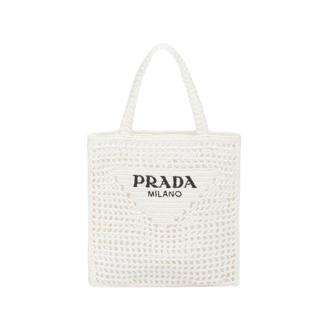 Borsa Prada in canvas bianco con logo stampato 36 cm