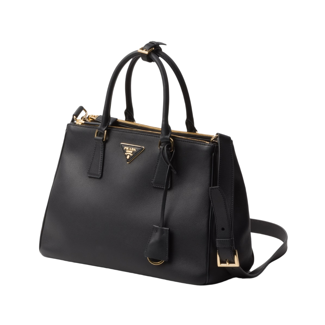 Borsa media Prada Galleria in pelle nera 19.5 cm