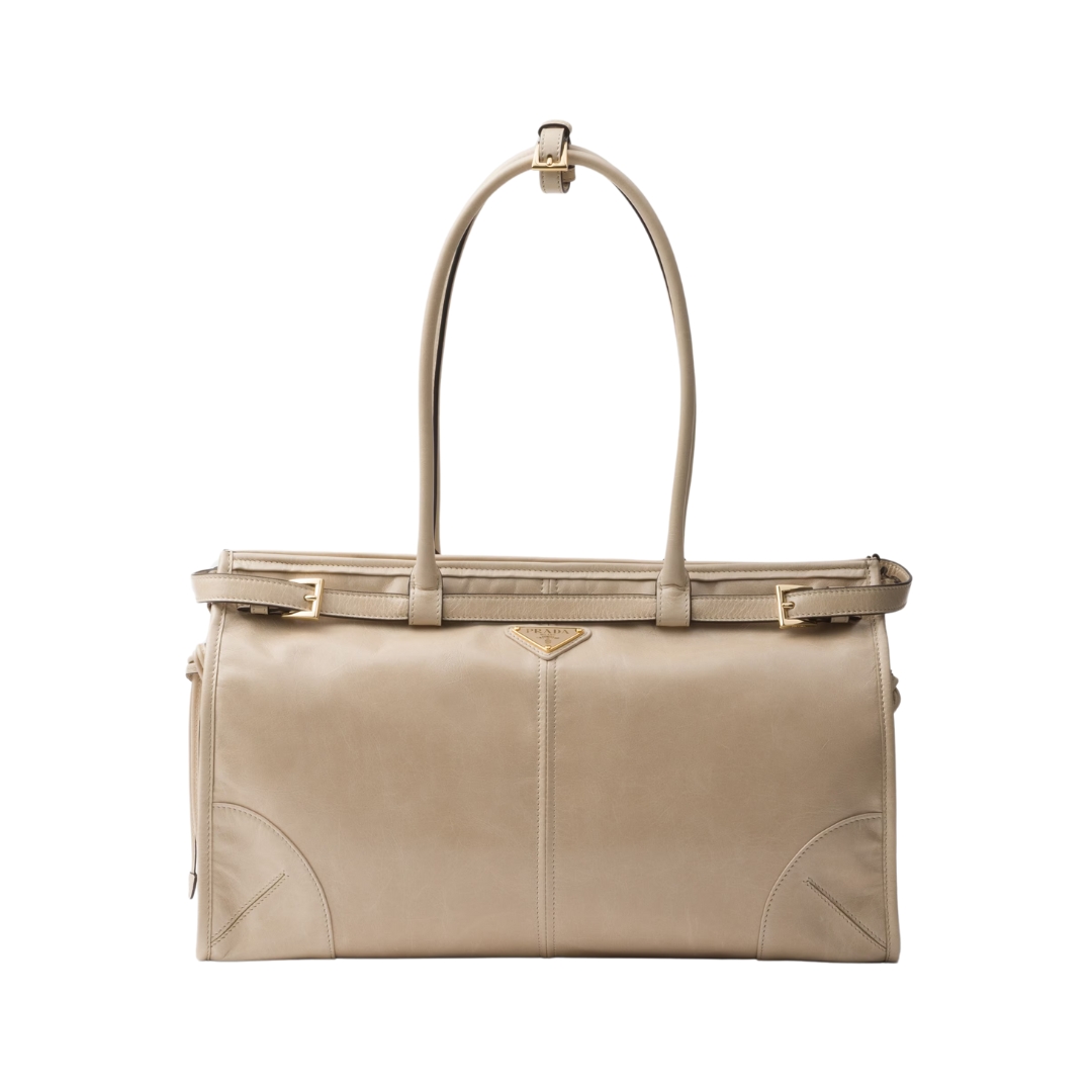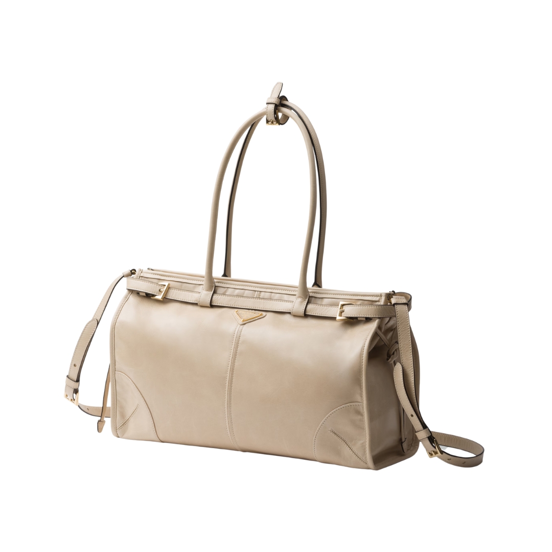 Borsa Prada Bonnie grande in pelle beige 24 cm