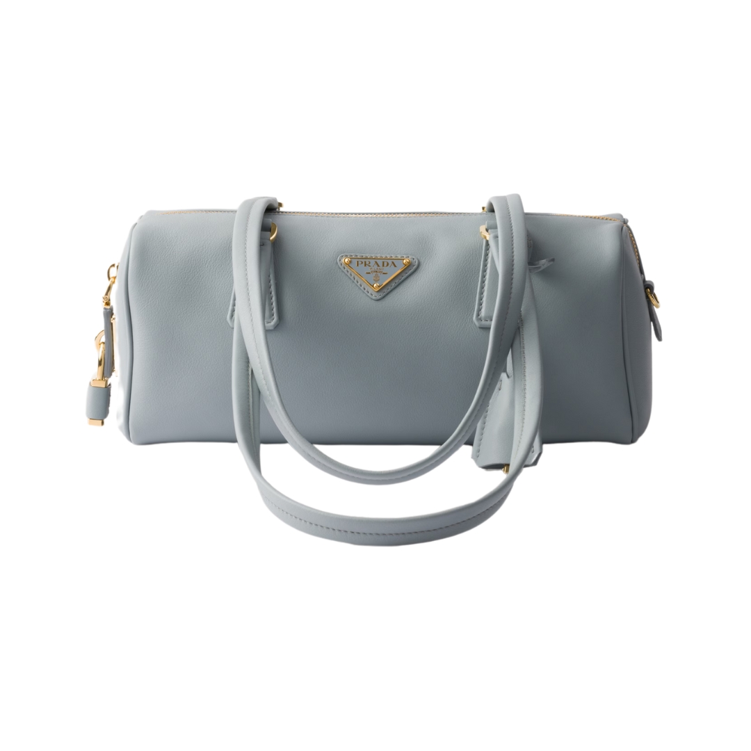 Borsa Prada con manico e lucchetto in pelle grigio ghiaccio 12.5 cm