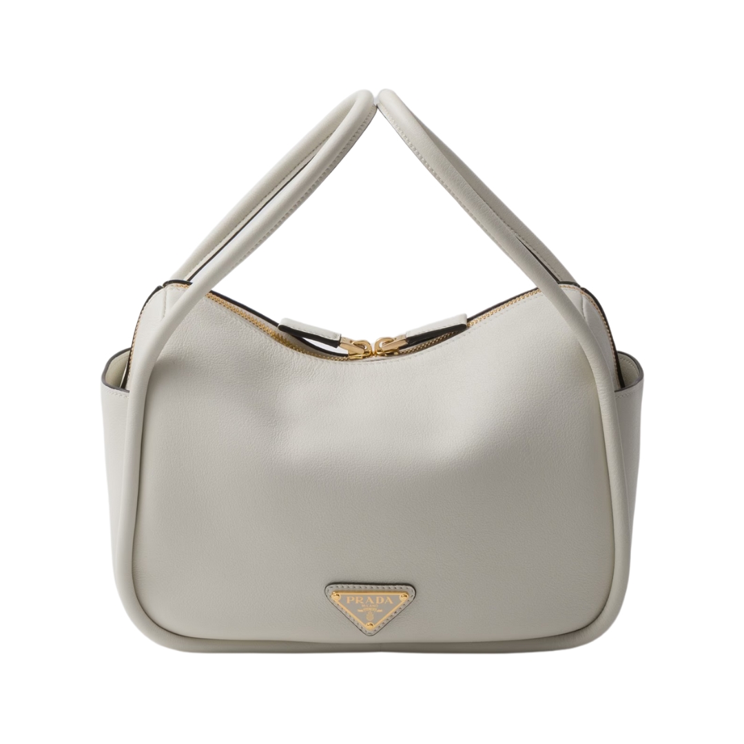 Borsa Prada media con manico in pelle bianca 12.5 cm