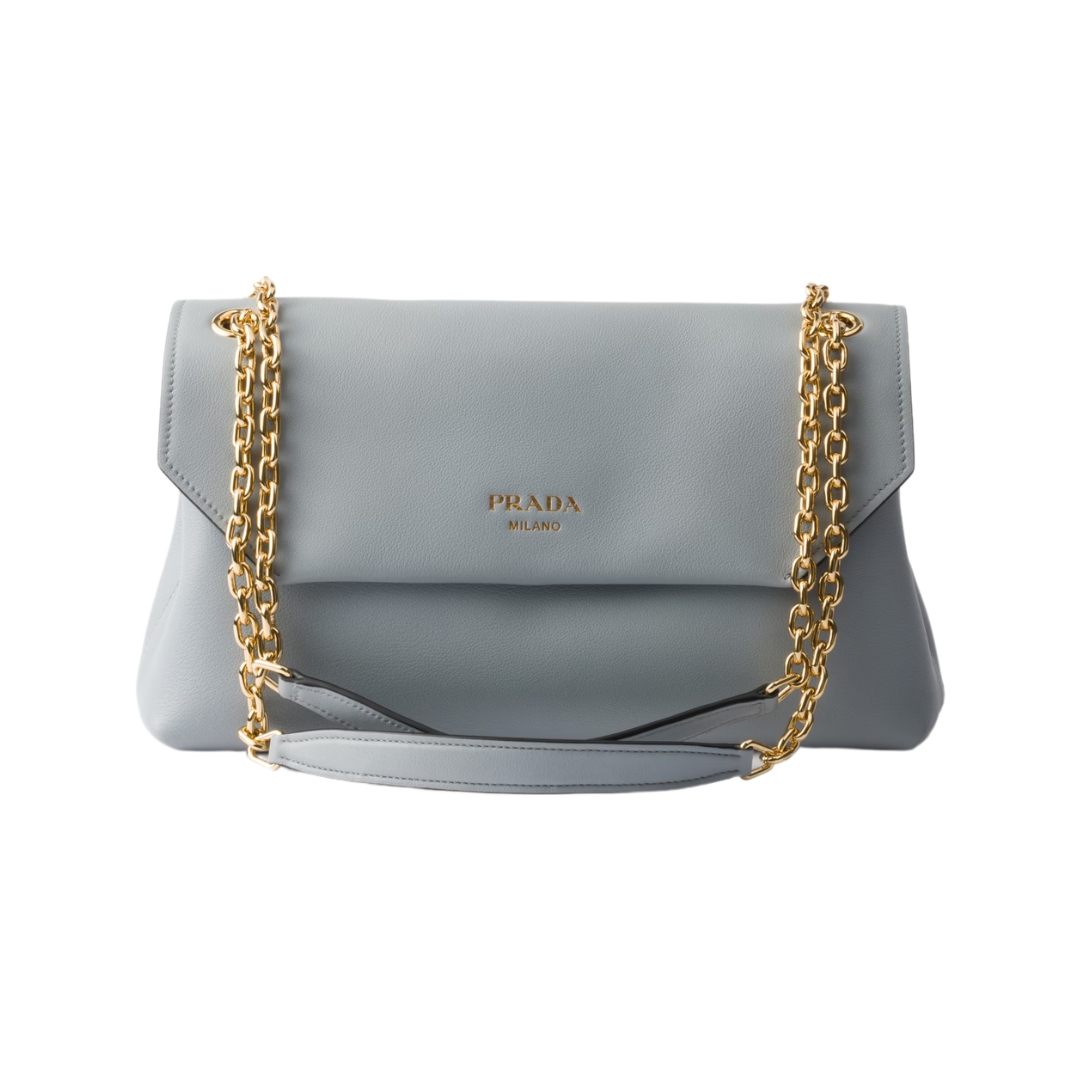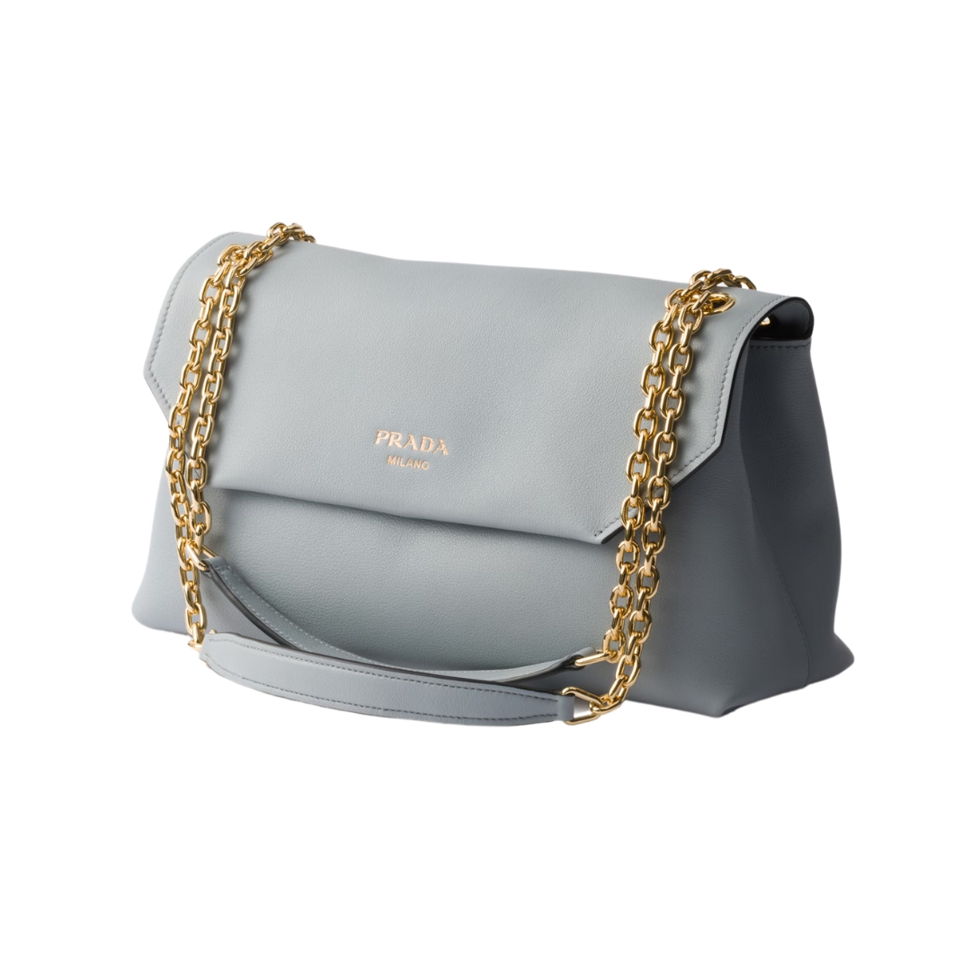 Borsa Prada Darling media a spalla in pelle grigio ghiaccio 16 cm