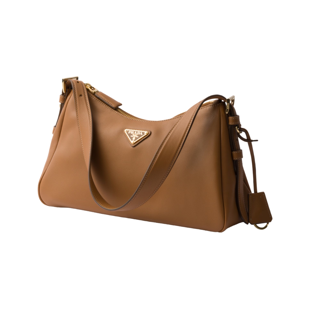 Borsa Prada Aimée grande a spalla in pelle color caramello 23 cm