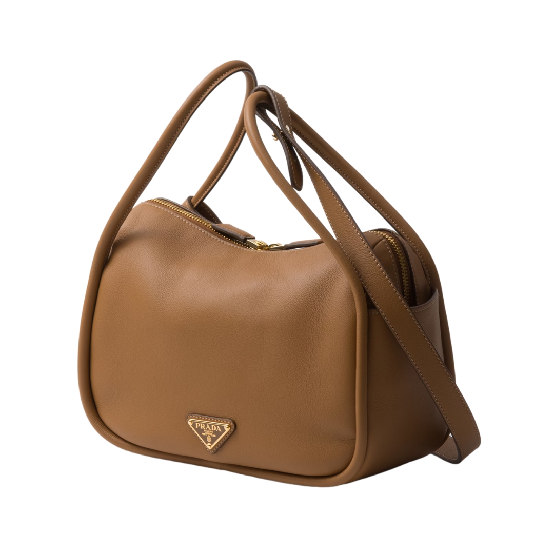 Borsa Prada media a spalla in pelle color caramello 18 cm