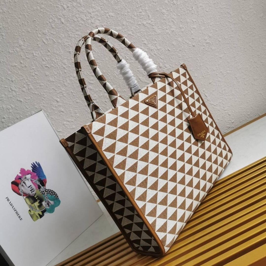 Borsa Prada Symbol ricamata in tela caffè 39 cm