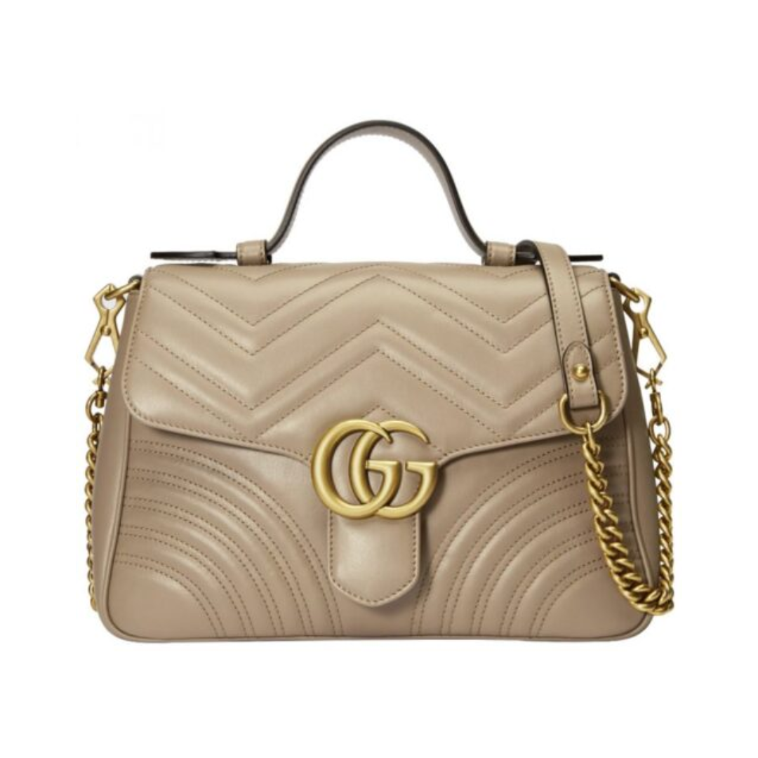 Borsa Gucci GG Marmont Top Handle in pelle beige 26 cm