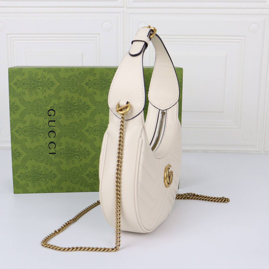 Borsa Gucci GG Marmont mezza luna mini in pelle crema 21 cm
