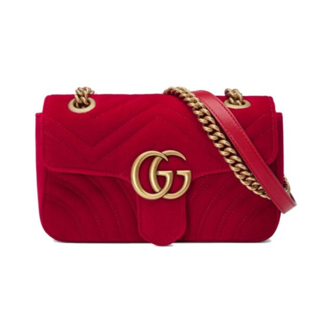 Borsa Gucci GG Marmont in velluto rosso trapuntato 26 cm