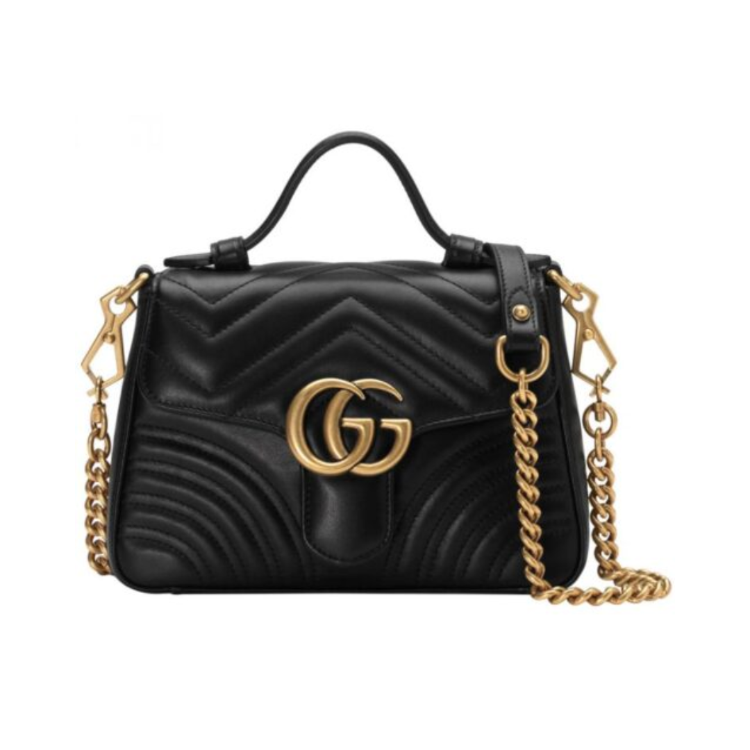 Borsa Gucci GG Marmont Top Handle in pelle nera 22 cm