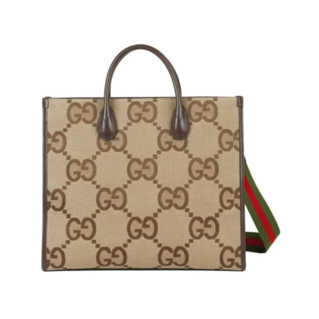 Borsa Gucci Jumbo GG Shopper in tessuto beige/marrone 37 cm