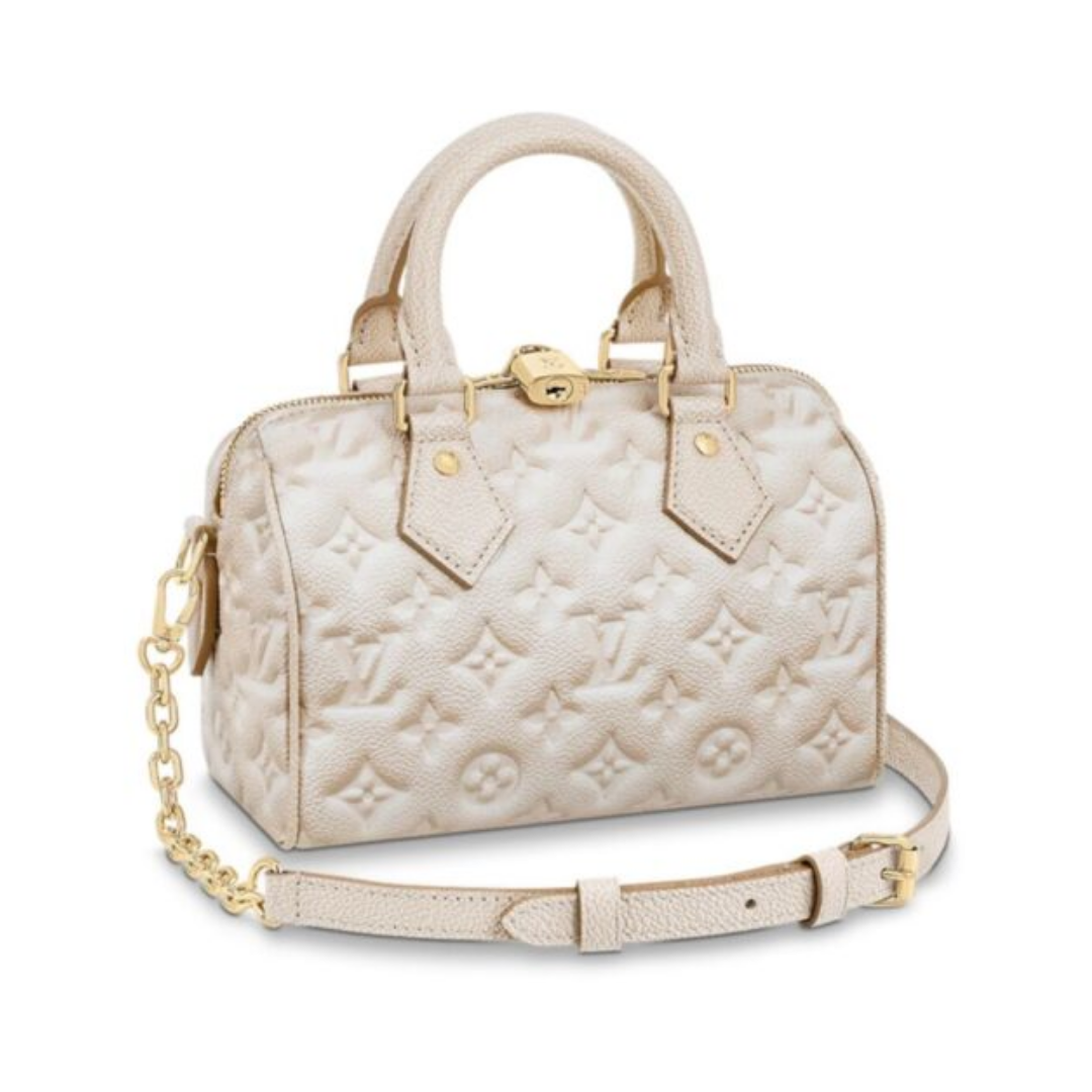 Borsa Louis Vuitton Speedy Bandoulière in pelle Monogram Empreinte crema 20 cm