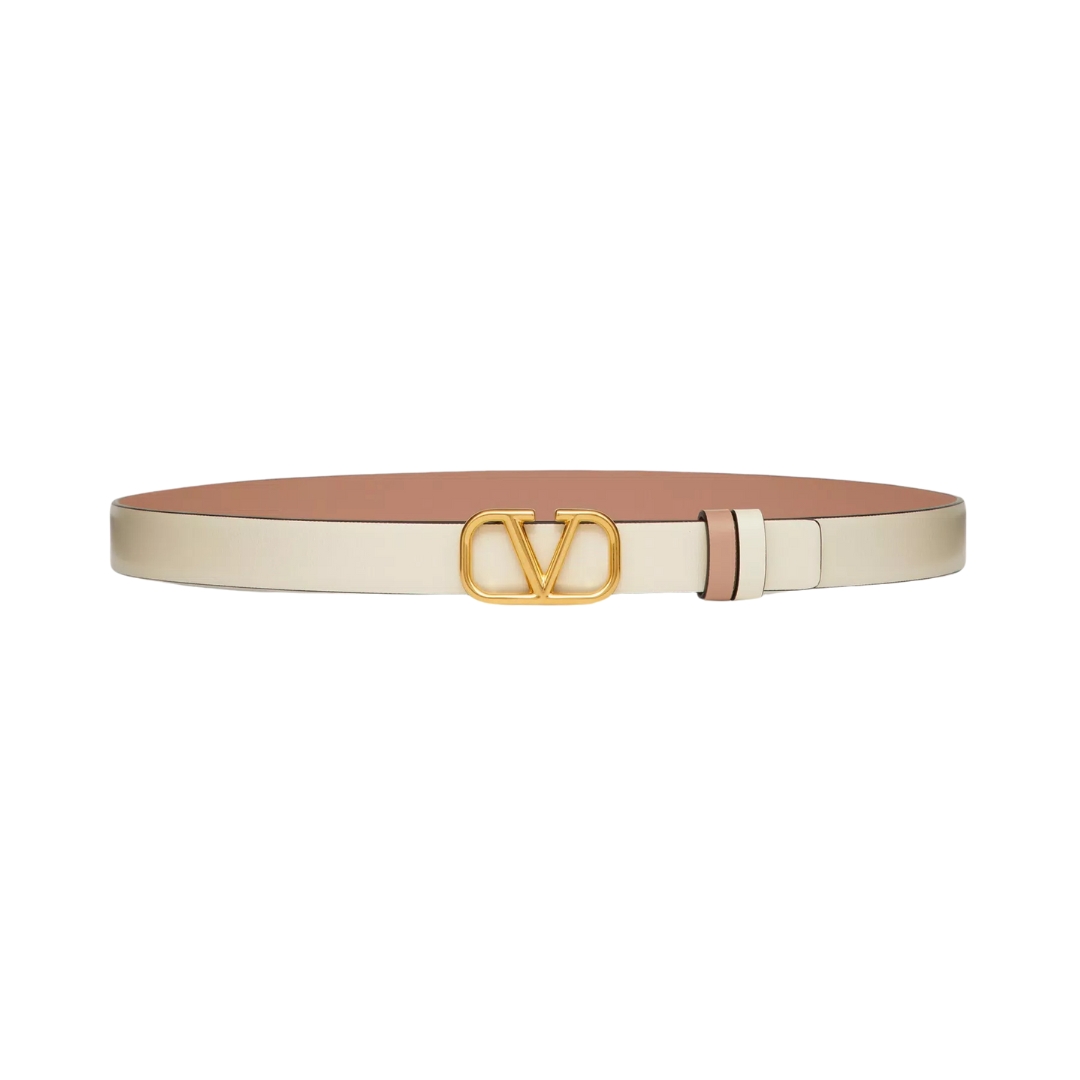 Dettagli:● Materiale: Pelle di vitello● Colore: Avorio da un lato, rosa cannella dall’altro● Chiusura: Fibbia VLogo Signature● Logo: VLogo in