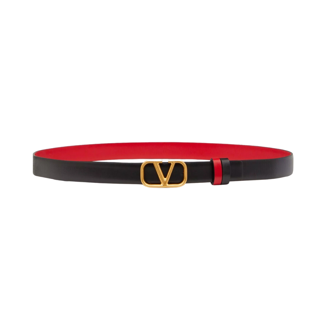 Cintura reversibile Valentino VLogo in pelle nera/rosso acceso 2 cm