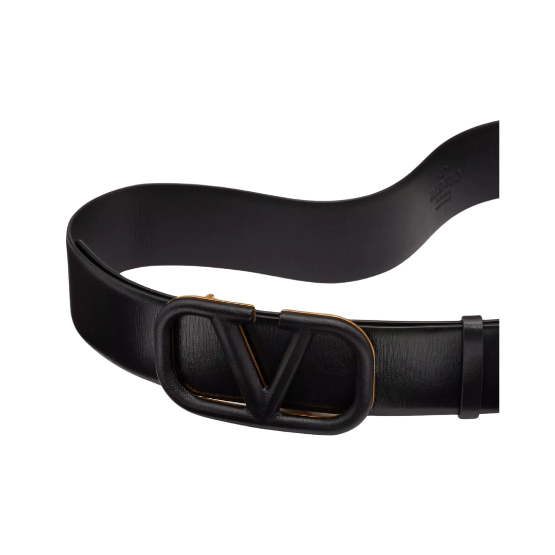 Dettagli:● Materiale: Pelle di vitello lucida● Colore: Nero● Chiusura: Fibbia con perno● Logo: VLogo Signature● Larghezza cintura: 4 cm● Interno: