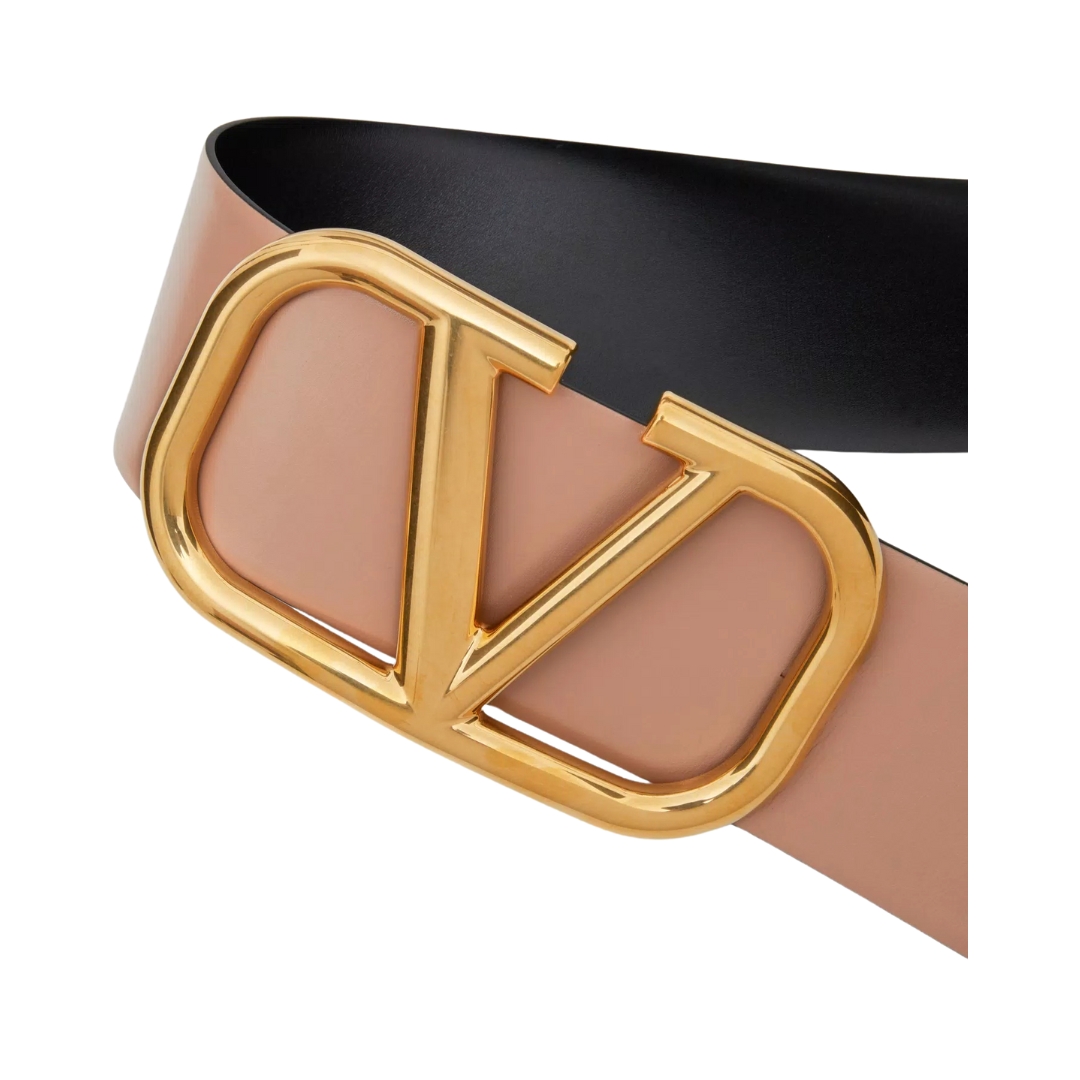 Dettagli:● Materiale: Pelle di vitello● Colore: Rosa cannella (reversibile tono su tono)● Chiusura: Fibbia VLogo Signature● Logo: VLogo metallico● Larghezza