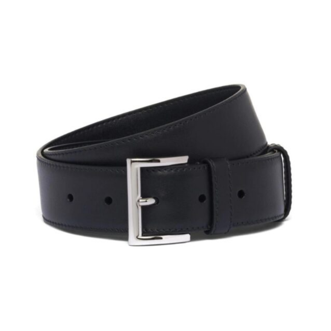 Dettagli:● Materiale: Pelle liscia● Colore: Nero● Chiusura: Fibbia rettangolare● Logo: Incisione sul passante● Altezza: 2,5 cm● Regolabile: Sì● Parti metalliche: