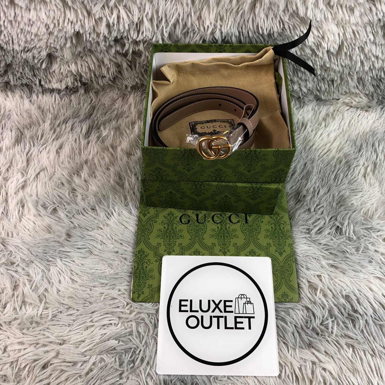 Dettagli:● Materiale: Pelle liscia● Colore: Marrone● Chiusura: Fibbia GG● Logo: GG in metallo dorato● Altezza: 2 cm● Regolabile: Sì● Parti