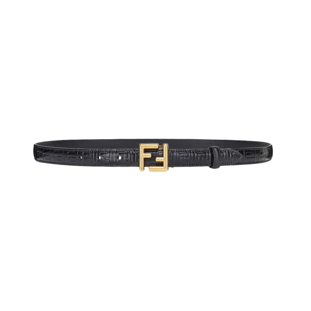 Cintura Fendi in pelle nera con logo inciso 2 cm