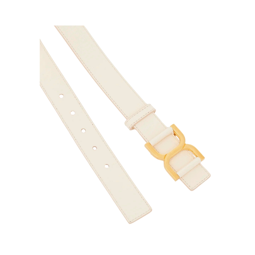 Dettagli:● Materiale: Pelle liscia● Colore: Beige latte● Chiusura: Fibbia C regolabile● Logo: Inciso sulla fibbia● Parti metalliche: Dorate● Larghezza: 3