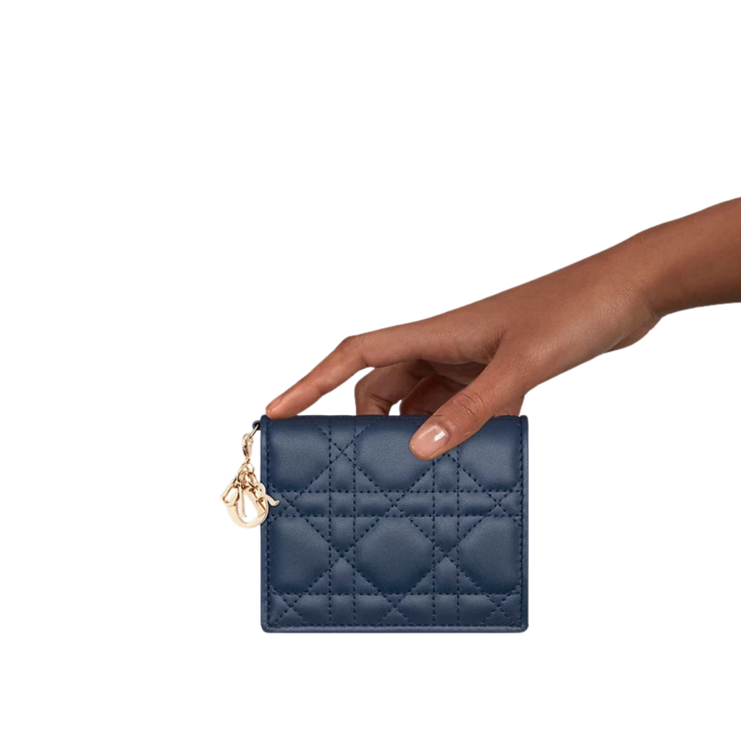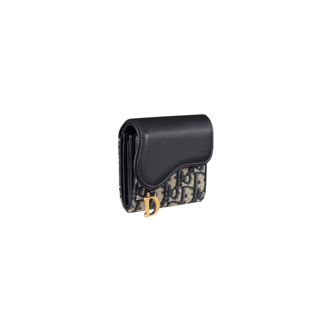 Portafoglio Dior Saddle Lotus in pelle blu navy