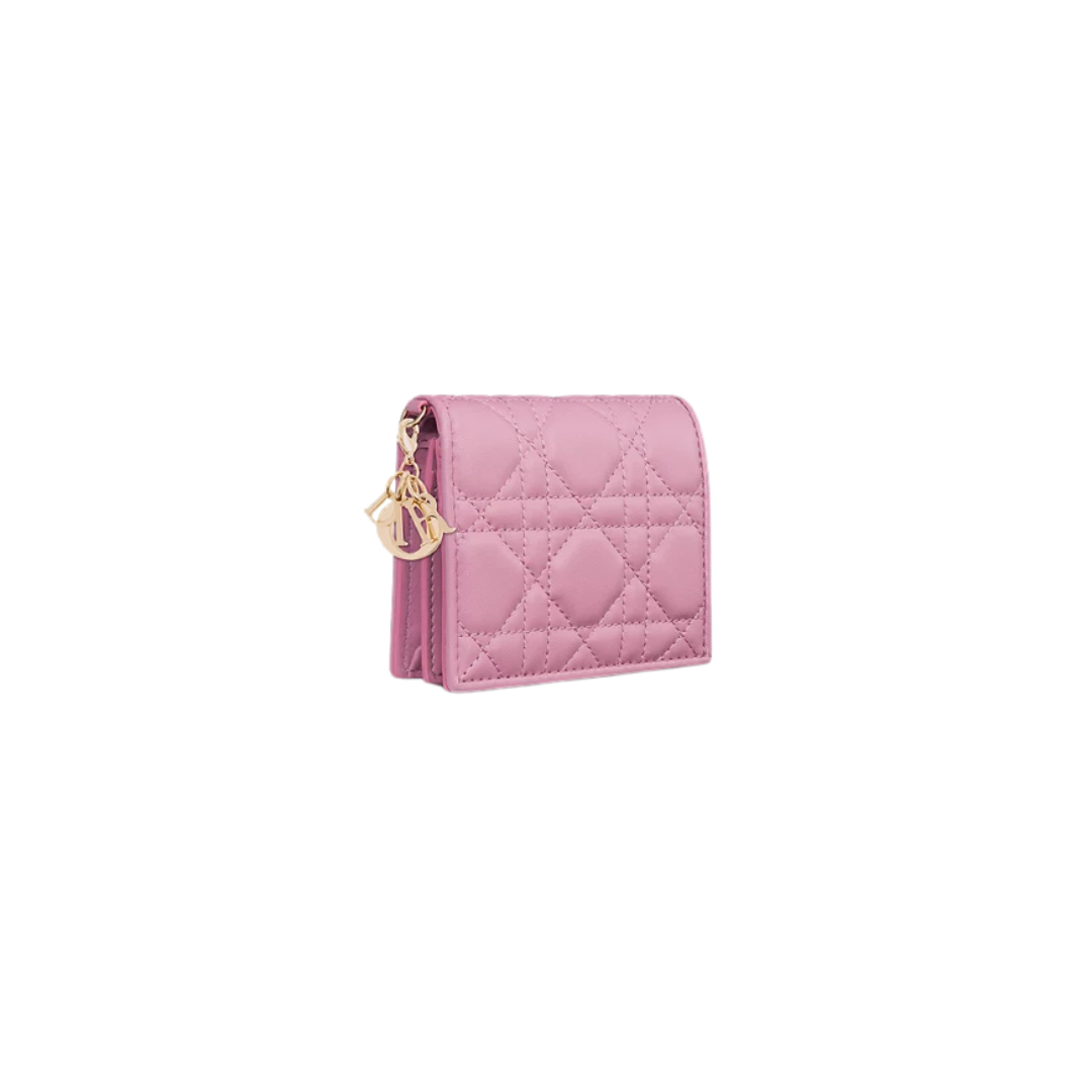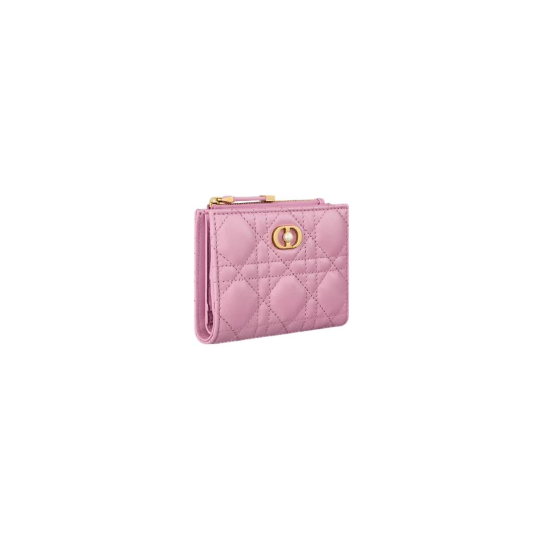 Dettagli:● Materiale: Pelle di agnello● Colore: Beige Dahlia● Chiusura: Bottone a pressione● Logo: “CD” dorato● Interno: Slot per carte e