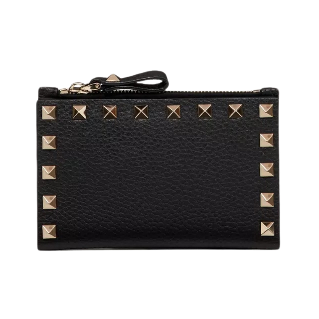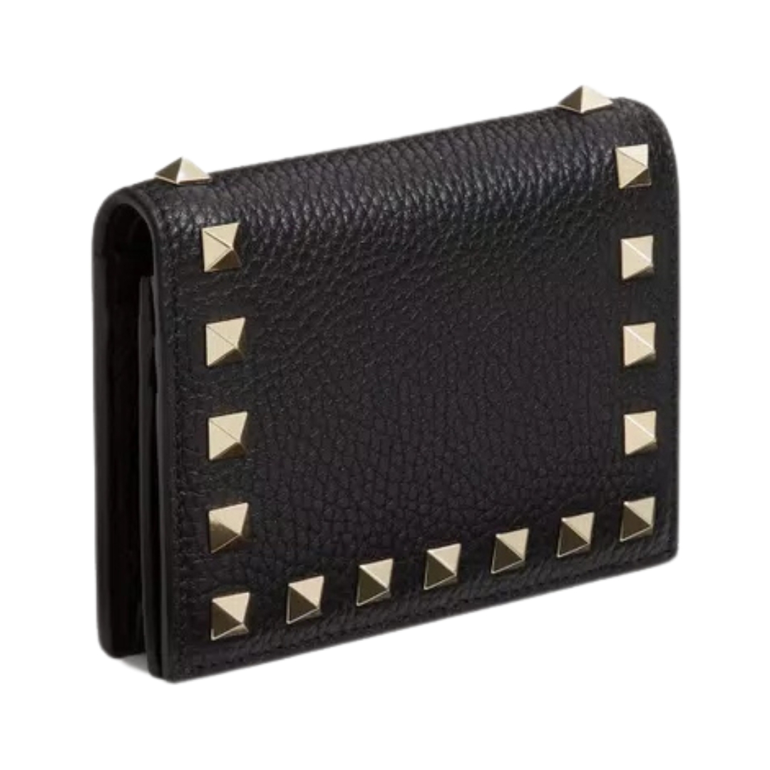 Portafoglio piccolo Valentino Rockstud in pelle nera 11,5 cm