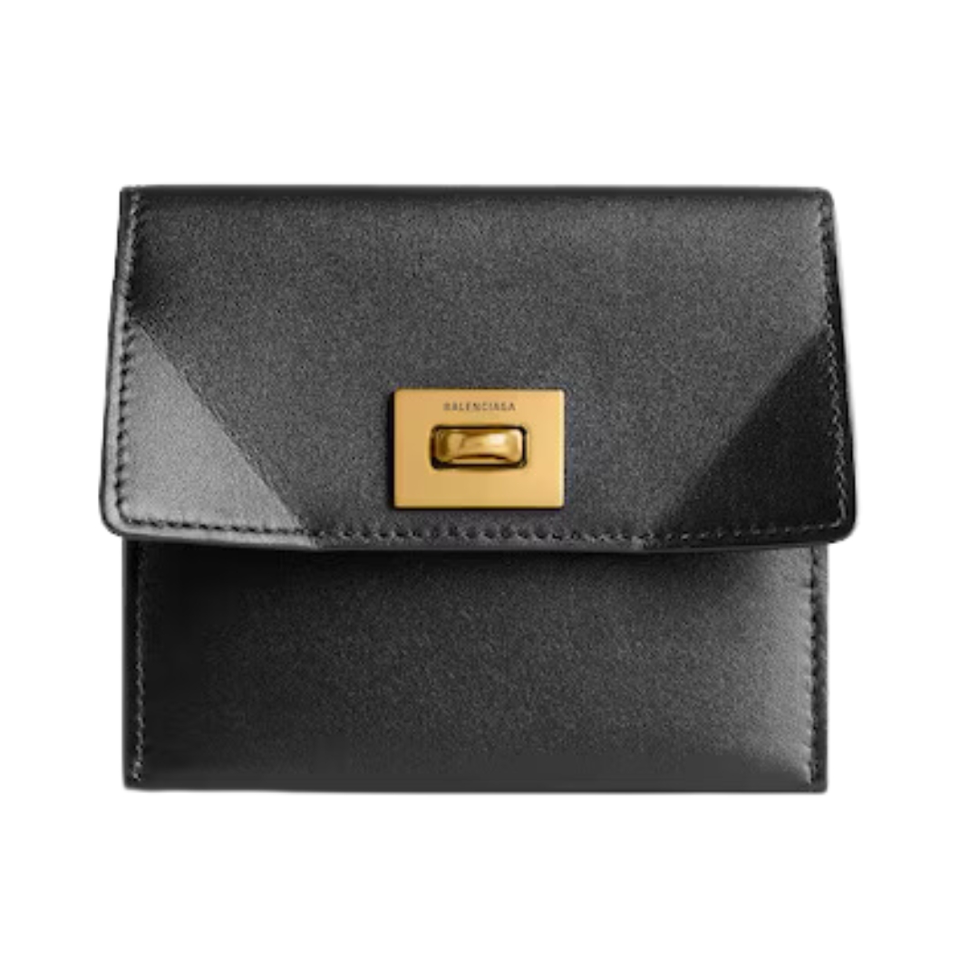 Portamonete e portacarte Balenciaga con patta in pelle nera 10 cm